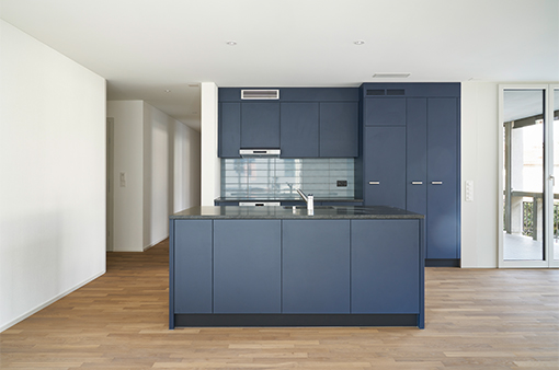 Eine Besonderheit bilden die jeweils vier Attikawohnungen, welche sich über 2 Geschosse verteilen. Mit dieser Organisation wird das privilegierte Attikageschoss ausschliesslich durch Wohnräume besetzt und für mehr Wohnungen erlebbar gemacht.