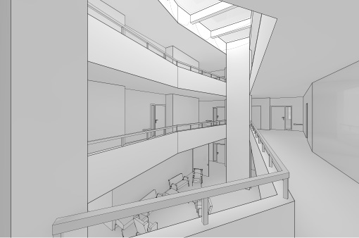 Die Verflechtung von Wohnen, Arbeiten und Erholen unter einem Dach führt zu einem neuen Bautyp, der in Dimension, Struktur und Gestalt an Hotelbauten der alpinen Gründerzeit erinnert. Der innere Zusammenhalt des Gebäudes wird durch einen zentralen Innenhof erlebbar gemacht. Die Verknüpfung verschiedener Nutzungen im Erdgeschoss und die „rue interieur“ mit angelagerten Wohnungen und Gemeinschaftsräumen in den Obergeschossen schaffen eine hohe Transparenz und Übersichtlichkeit und schaffen vielfältige Begegnungsräume.