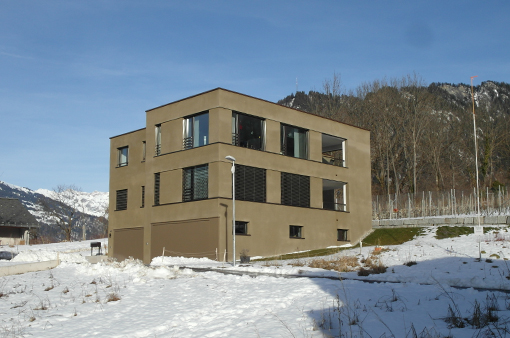 Das Doppelwohnhaus Rüfali liegt am oberhalb Dorfrand der Gemeinde Zizers auf einem grossräumigen Schuttkegel. Das Wohnhaus ist Teil eines neu geschaffenen Quartierplanes, welcher 6 weitere Bauparzellen umfasst.